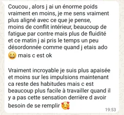 Observe les premiers déclics apparaître souvent dès les premières semaines, même si le rythme dépendra de ton engagement et de ton honnêteté envers toi-même. Mise sur une reconnexion progressive à ton énergie vitale plutôt que sur un résultat instantané. Accueille cette transformation qui, au bout de 3 mois, t'apportera plus d'alignement, de présence et de joie sur le chemin vers la version de toi que tu as libérée.